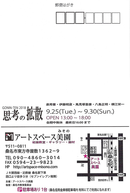 出品作家:八島正明、吉田賢治、泉秀憲、小垣内学、馬見塚喜康、小林実沙紀、伊藤明淑