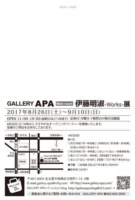 会期:2017年8月26日(土)~9月10日(日)11:00〜19:00